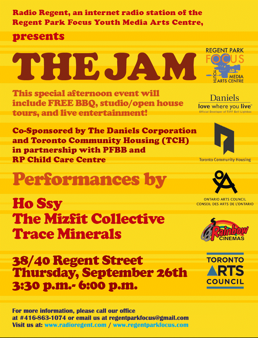 This upcoming Thursday afternoon from 3:30 – 6:00 p.m Regent Park Focus & Radio Regent are back with the latest in their monthly concert/performance series called “The Jam.” The September 26th edition will feature live music and a performance by by the globe-trotting didgeridoo master and one-man-band: Ho Ssy.